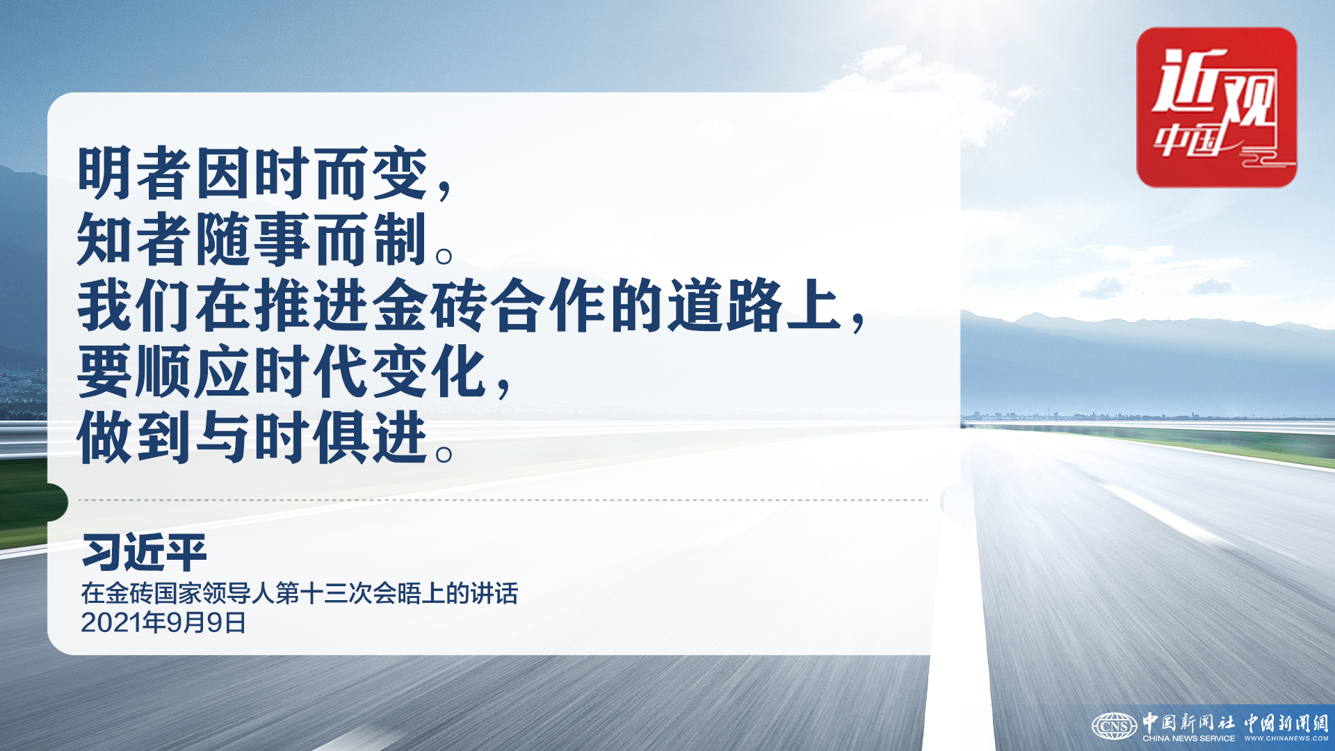 2021年9月9日晚,金砖国家领导人第十三次会晤以视频方式举行。中国国家主席习近平发表题为《携手金砖合作 应对共同挑战》的重要讲话。