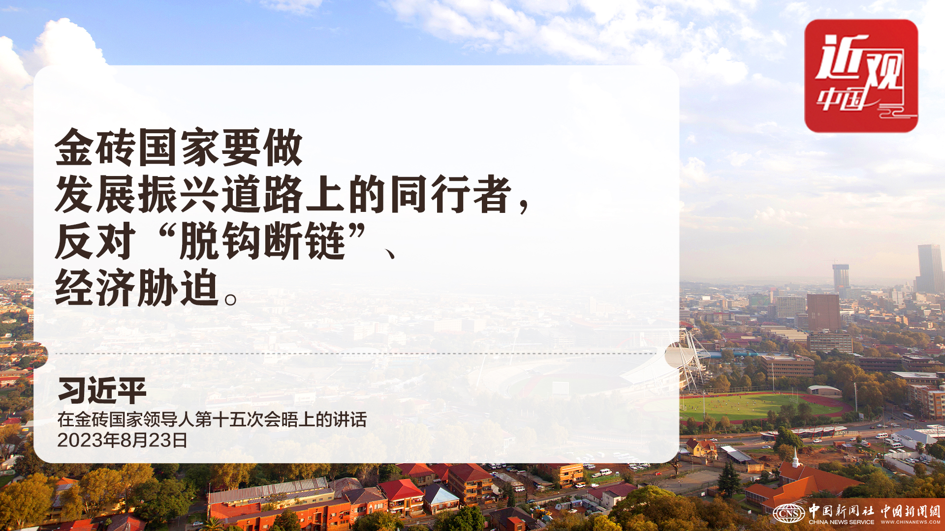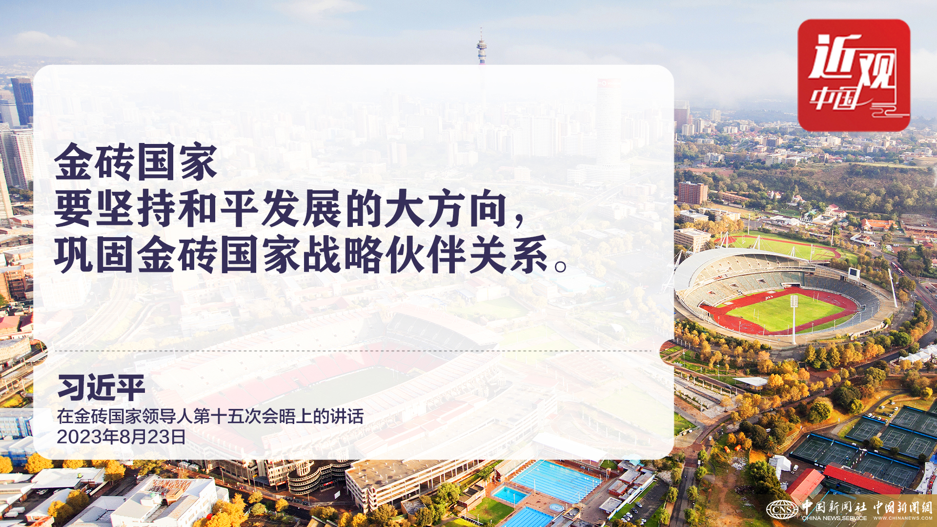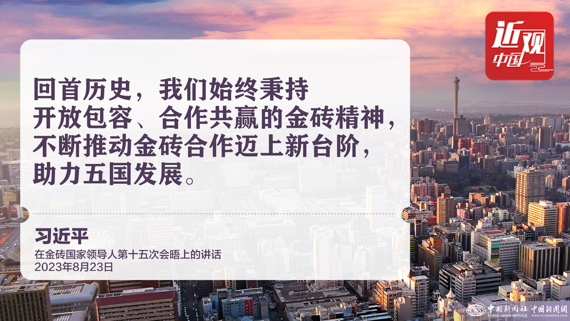 当地时间2023年8月23日上午,金砖国家领导人第十五次会晤在约翰内斯堡杉藤会议中心举行。中国国家主席习近平发表题为《团结协作谋发展 勇于担当促和平》的重要讲话。