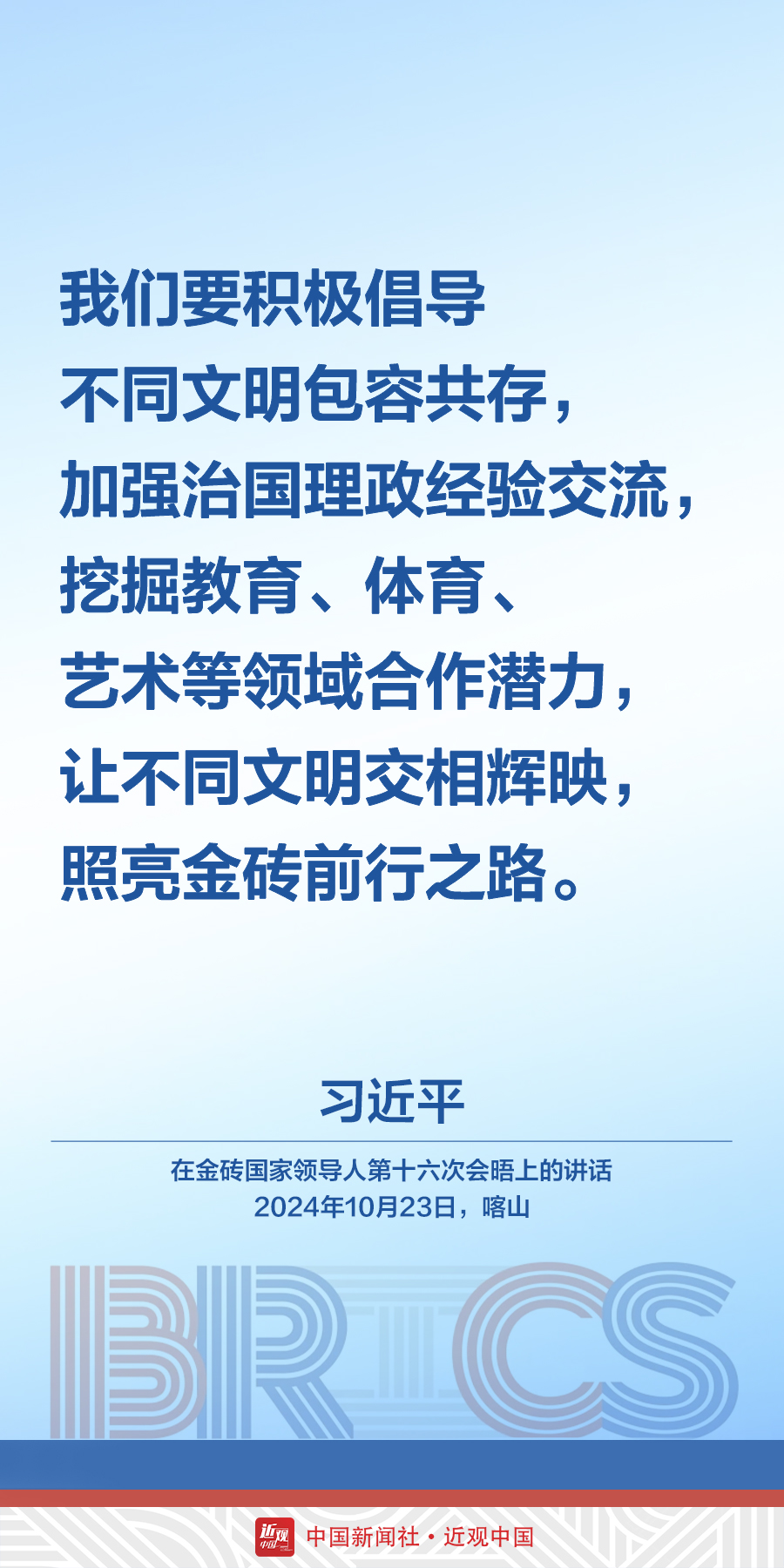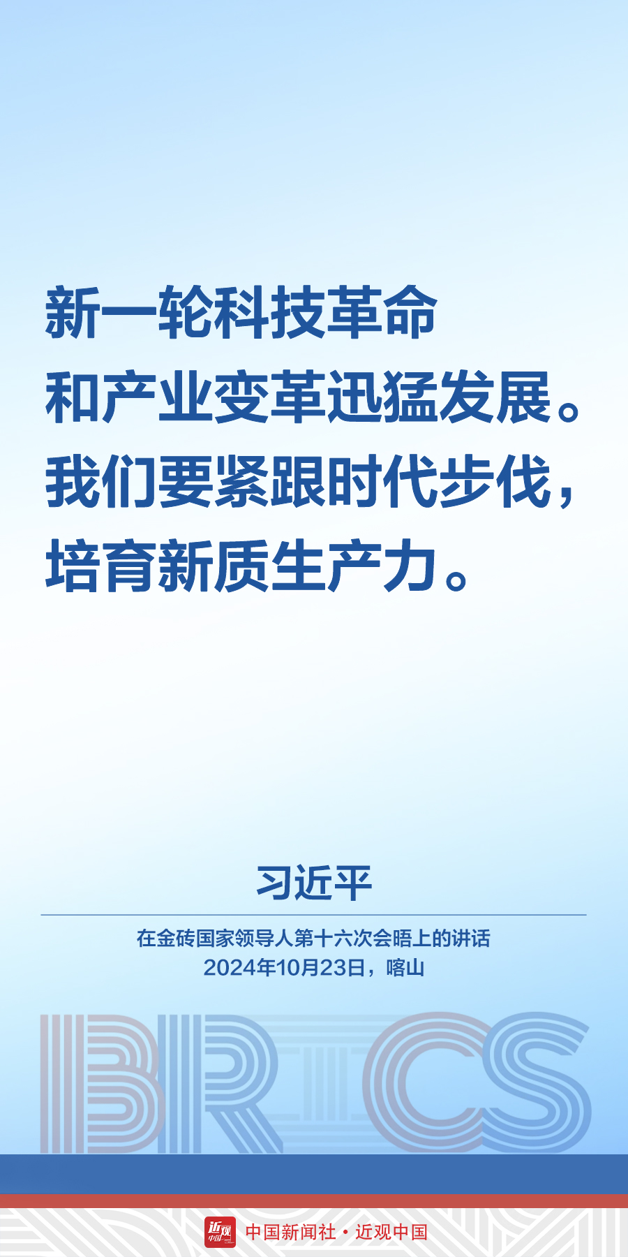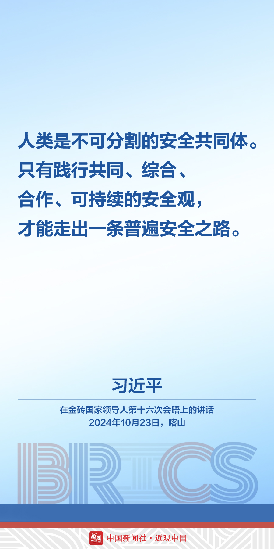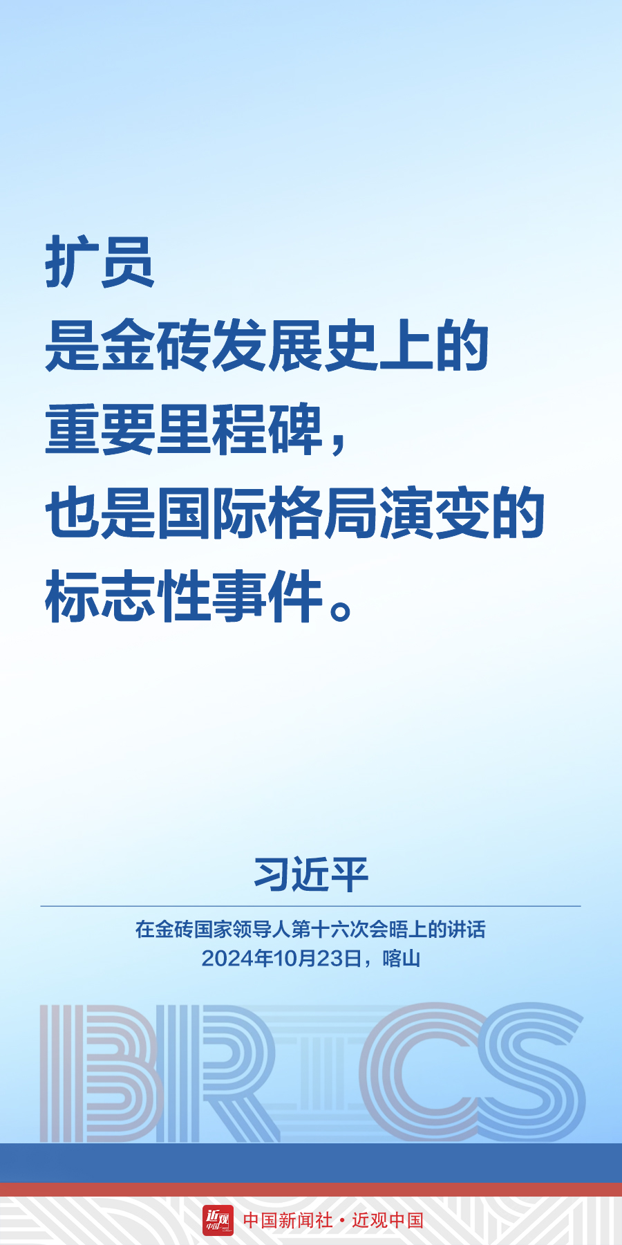 当地时间10月23日,中国国家主席习近平在俄罗斯喀山出席金砖国家领导人第十六次会晤。他在讲话中发出中国声音——