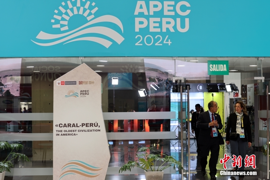 当地时间11月12日,工作人员在位于秘鲁首都利马的2024APEC国际媒体中心内交谈。中新社记者 盛佳鹏 摄