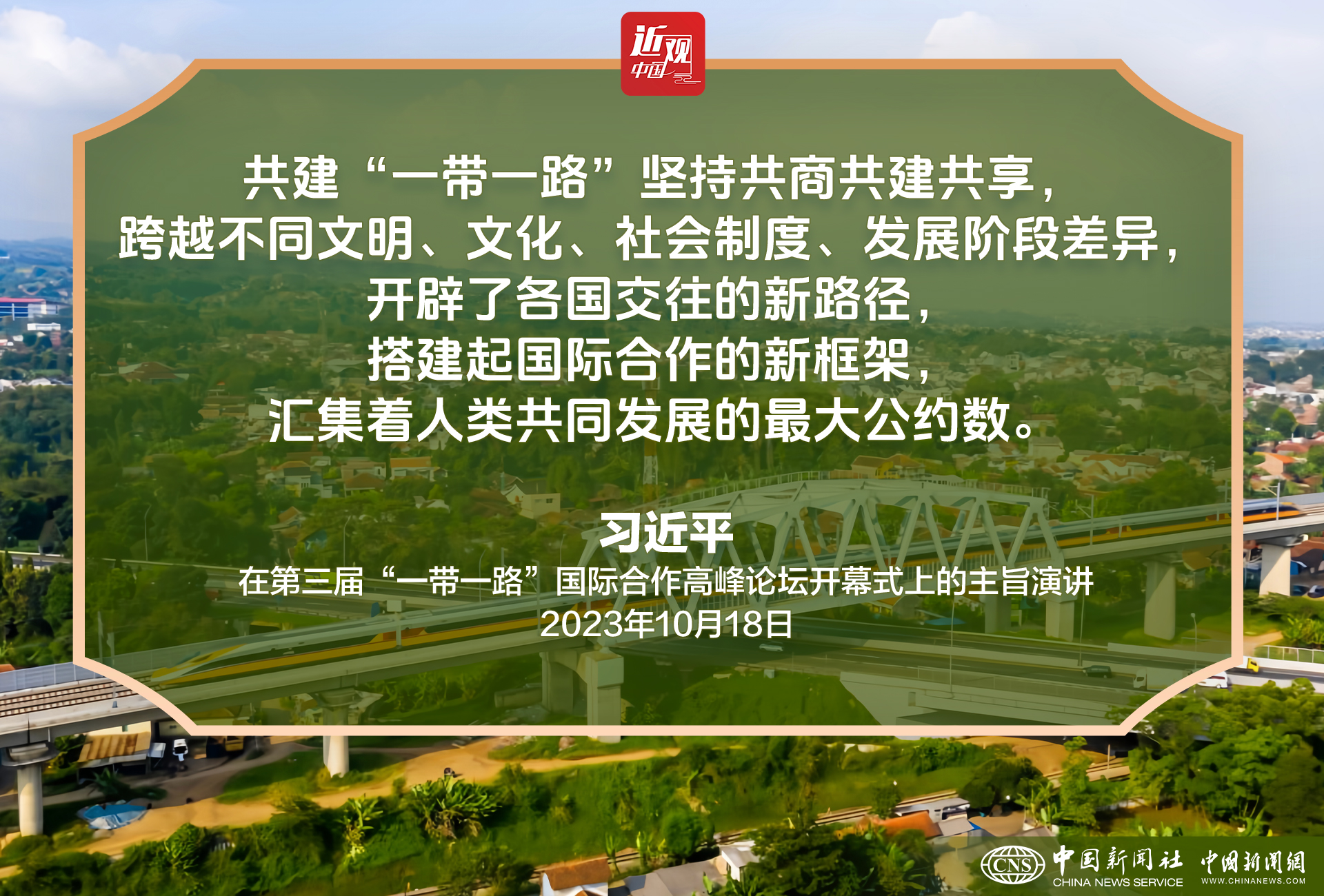 习近平表示,共建“一带一路”坚持共商共建共享,跨越不同文明、文化、社会制度、发展阶段差异,开辟了各国交往的新路径,搭建起国际合作的新框架,汇集着人类共同发展的最大公约数。