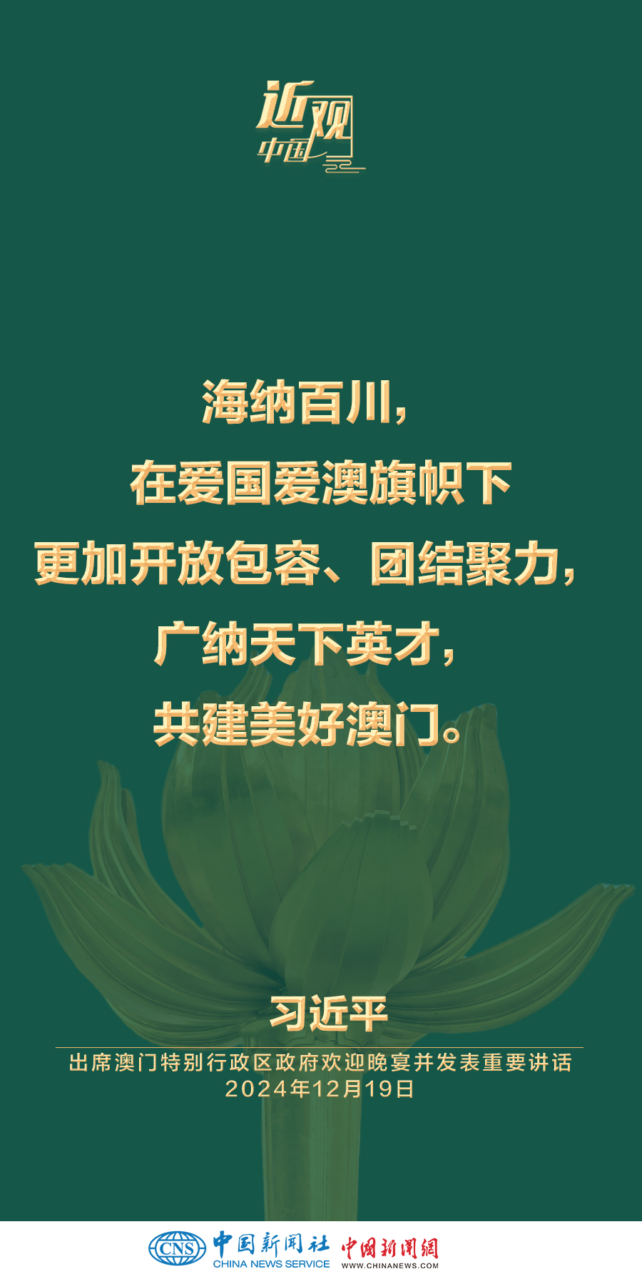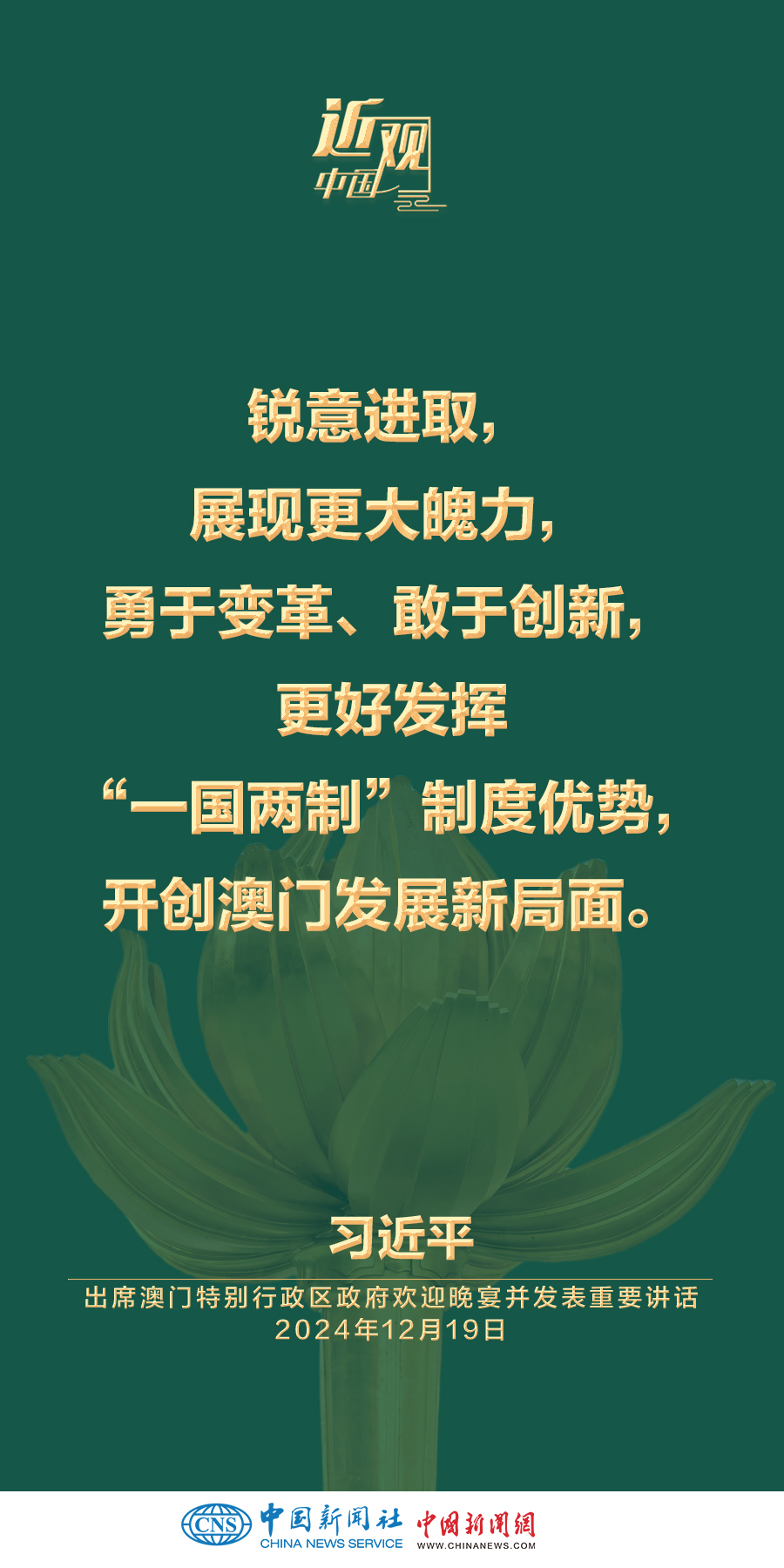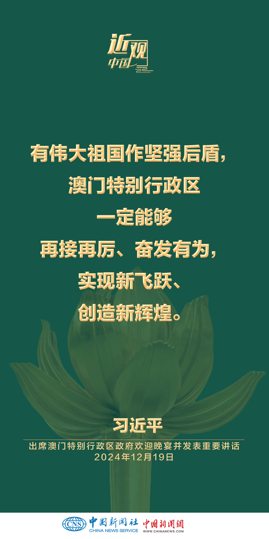 国家主席习近平19日晚出席澳门特别行政区政府欢迎晚宴并发表重要讲话。习近平指出——
