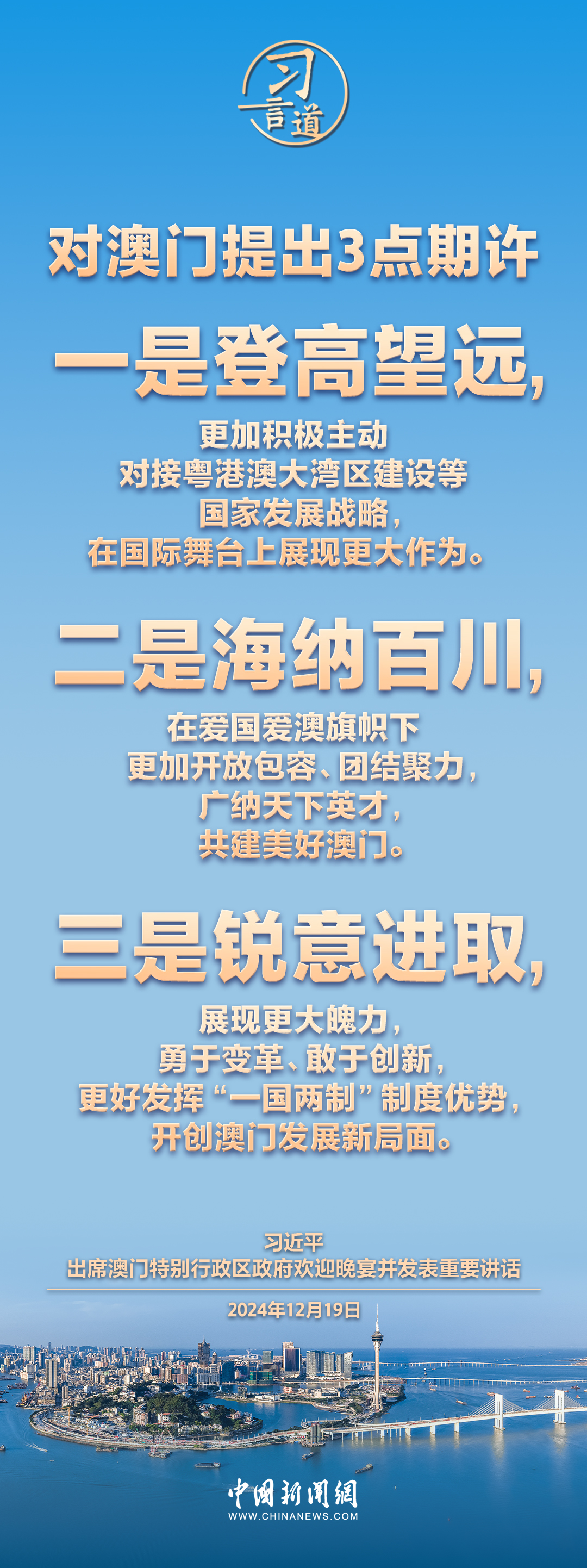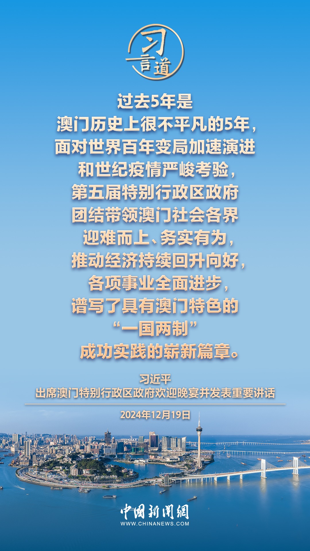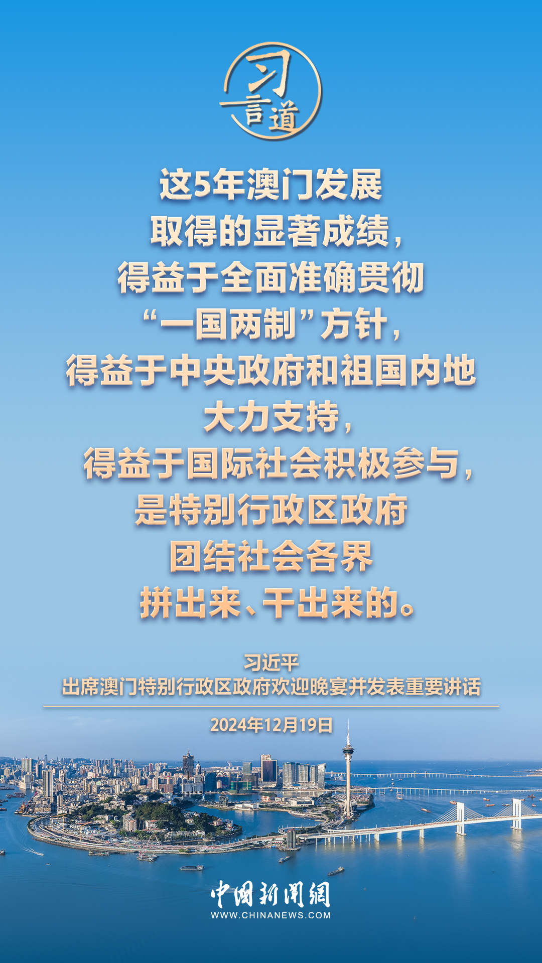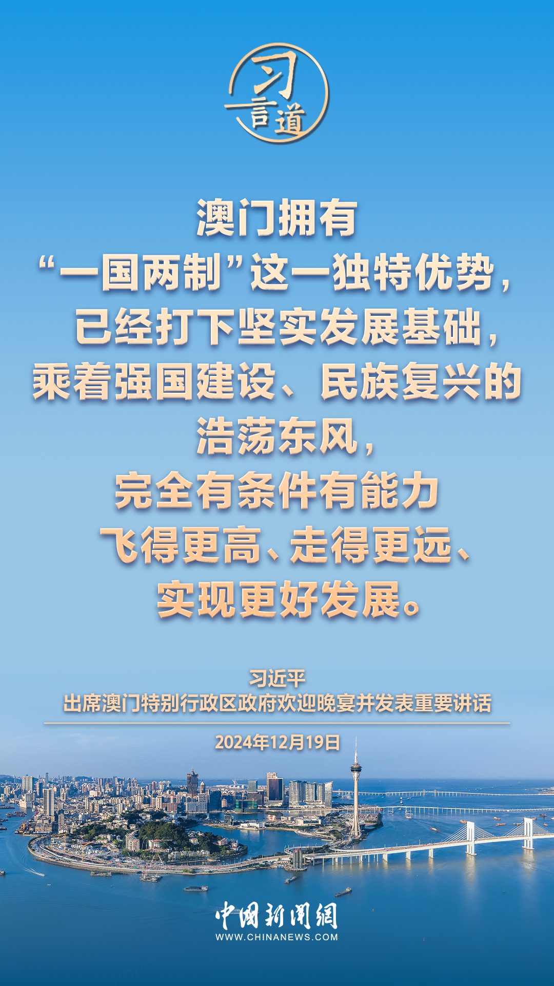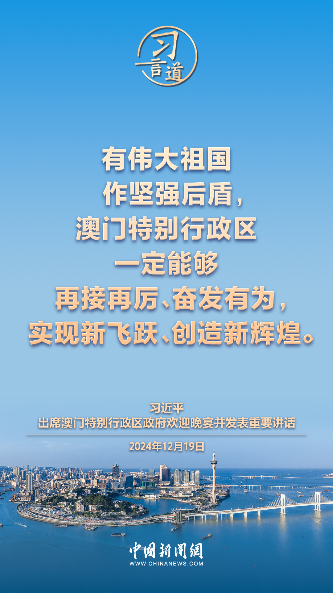国家主席习近平19日晚出席澳门特别行政区政府欢迎晚宴并发表重要讲话。习近平指出——