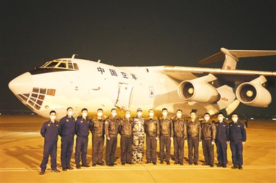 1月24日,空军航空兵某团大型运输机飞抵陕西咸阳机场,机组人员奉命执行空运空军军医大学医疗队驰援武汉任务。 李世宁摄(新华社发)