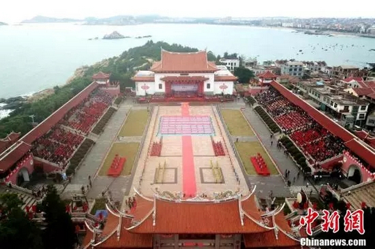 当天,盛大的秋祭妈祖大典揭开本届妈祖文化旅游节大幕。湄洲妈祖祖庙董事会董事长林金赞率海内外宫庙代表组成的陪祭团,向妈祖金身叩礼上香,共祈两岸和平,四海同安。