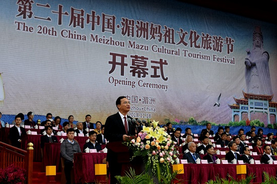 中共莆田市委书记林宝金在开幕式上致辞表示,莆田将以妈祖文化为纽带,密切两岸经贸合作和民间往来,促进两岸同胞心灵契合;将推动妈祖文化与海洋文明紧密结合,加强与海丝沿线国家和地区在海洋产业发展、海洋科技创新、海洋环境保护等交流合作。