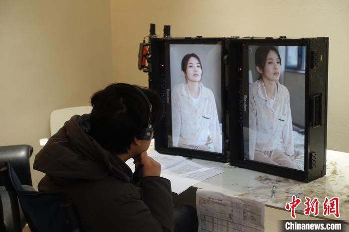 浙江横店,一位影视工作者使用竖屏监视器导戏。(资料图) 钱晨菲 摄