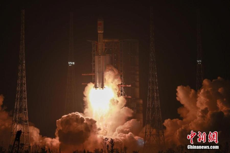 资料图:2024年11月15日,搭载天舟八号货运飞船的长征七号遥九运载火箭,在中国文昌航天发射场点火发射。中新社记者 贾天勇 摄