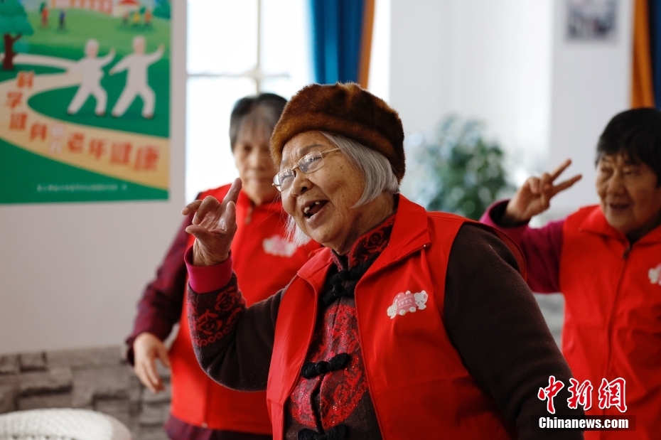 资料图:一家社会福利院内,老人们在社工的带领下活动身体。中新社记者 韩海丹 摄