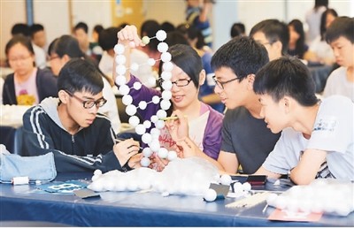 香港科技园定期组织研习活动,让学生走进科技企业了解改变世界的创新发明,激发创新灵感。图为香港学生正在园内研究制作DNA模型。 (网络图片)
