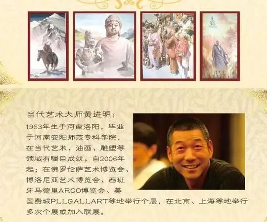 黄进明系当代著名油画家,1963年出生于河南洛阳,1983年毕业于河南安阳师范专科学院,专修油画和雕塑。在当代艺术、油画、雕塑等领域所获成就,令世人瞩目。自2006年起,黄进明已经陆续在意大利佛罗伦萨艺术博览会、罗马尼亚艺术博览会,西班牙马德里ARCO艺术博览会,美国费城PLLGALLART 等地举行个展,还在中国北京、上海等地举行多次个展及加入联展,好评如潮。
