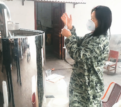 凌晨5点多,村里各户人家睡得正香,周家厂房里锅灶烧水声“滋滋啦啦”响了起来。夫妇俩穿着工作服,倒出白酒放入锅炉蒸馏,眼睛一眨不眨盯着刻度变化——提纯酒精这事儿,可来不得半点马虎,既要保障生产安全,又要让提取出来的酒精符合医用“75度”标准。