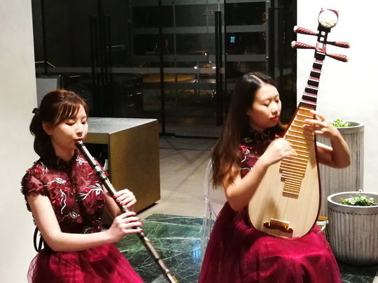 来自中乐学院的美女演奏家们为大家表演了精彩优雅的民族传统音乐,为晚宴增加了欢乐喜庆气氛。(完)