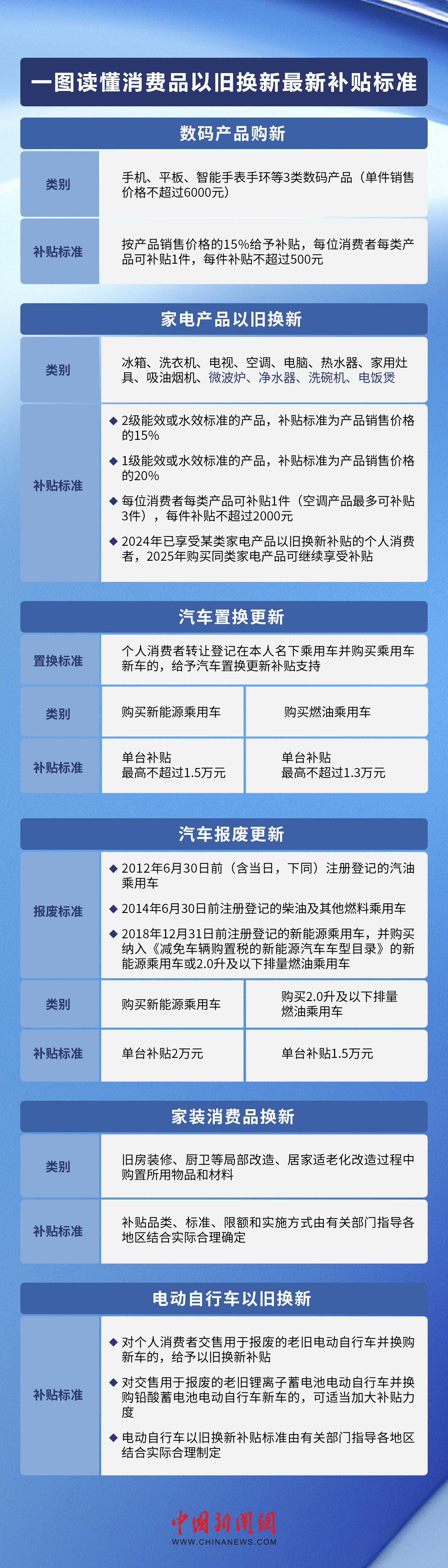 国补、手机价格不超6000元可获补贴、以旧换新补贴家电产品增至12类……