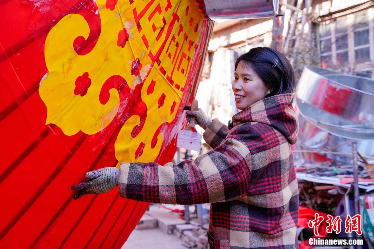 村民赶制宫灯。王朋 摄