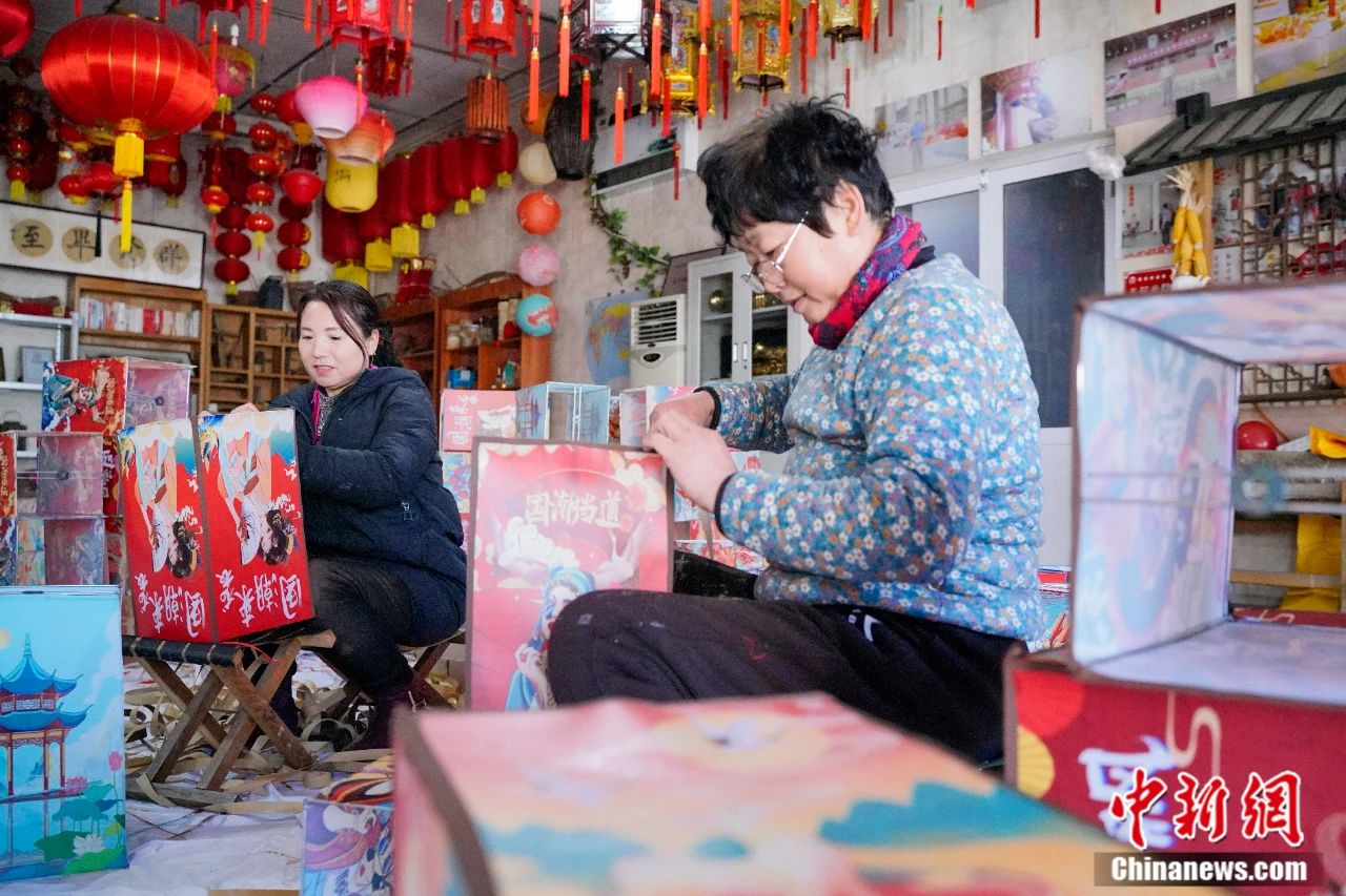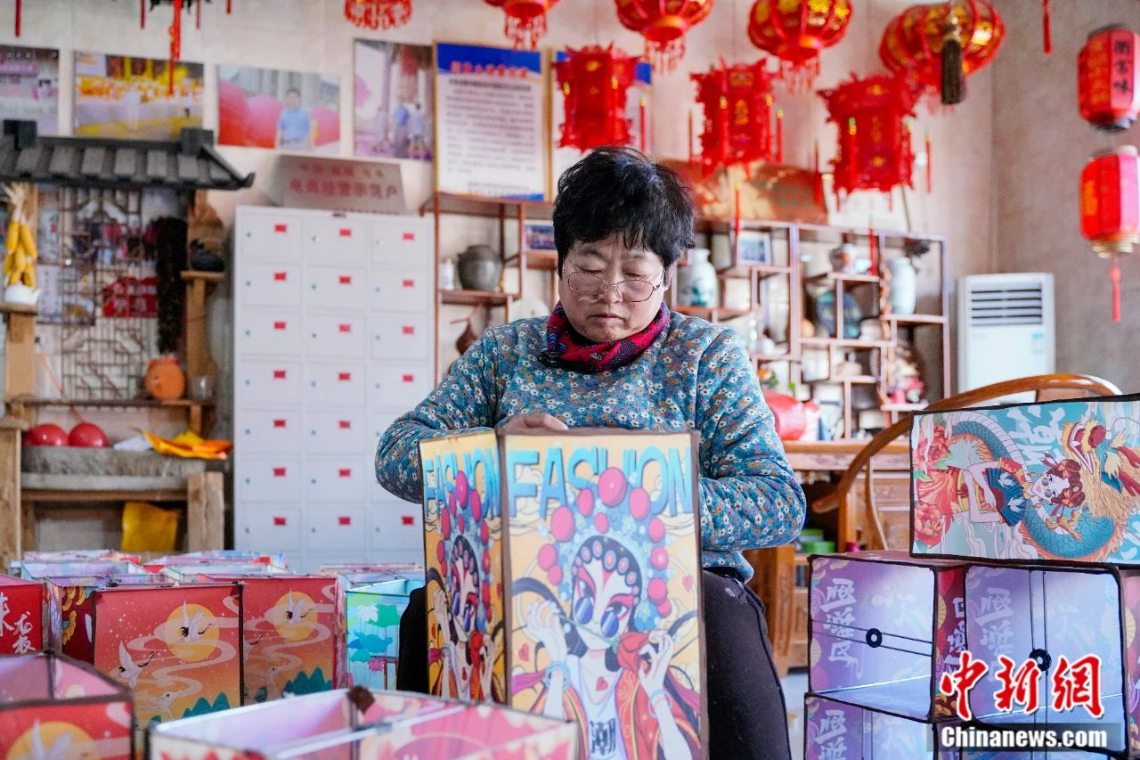 村民正在制作“国潮风”灯笼。王朋 摄