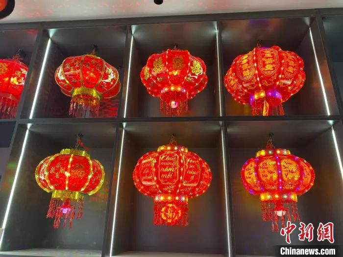 当地一家灯笼厂展示的主要用于出口越南的七彩转灯。李玉素 摄