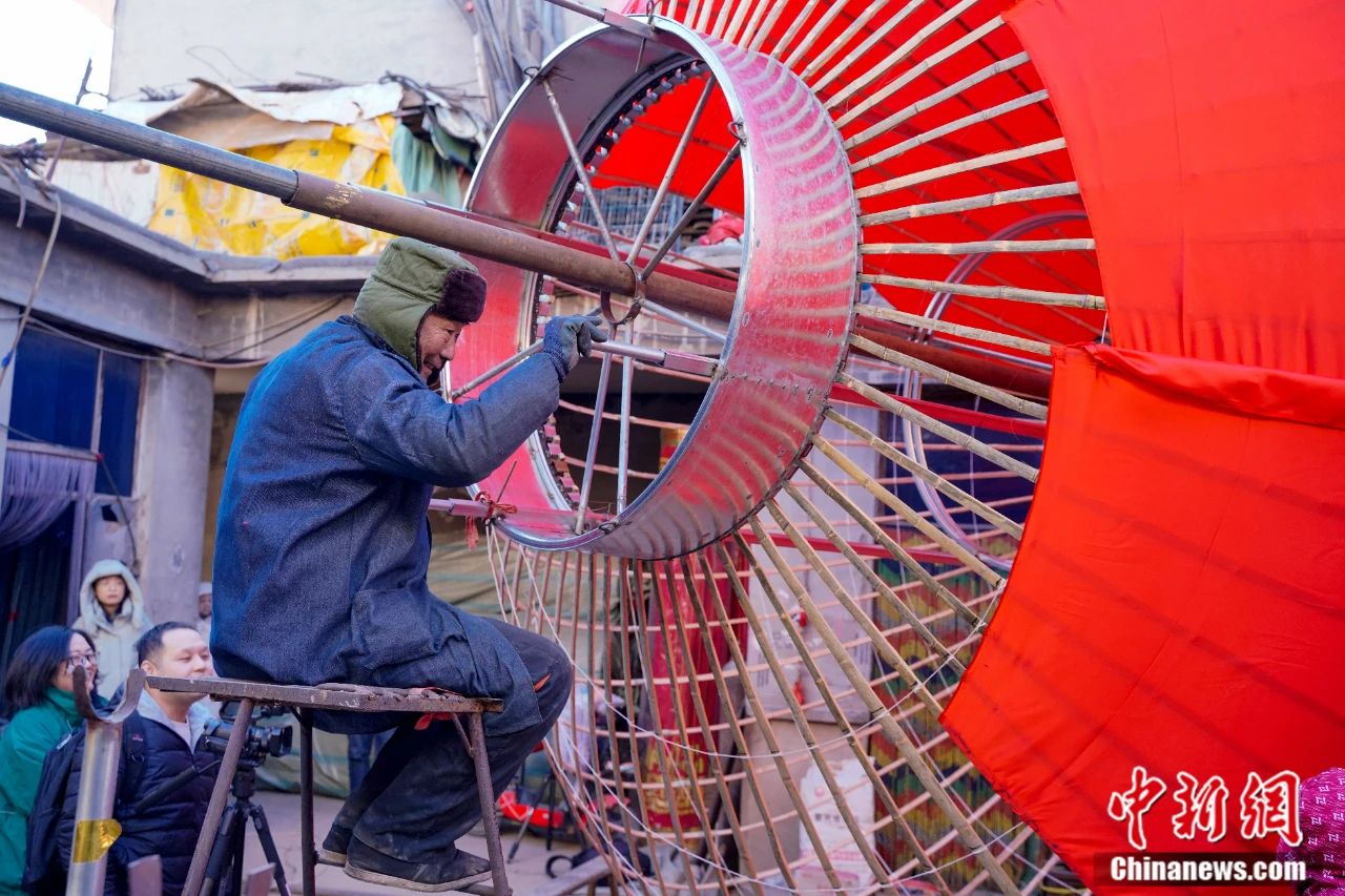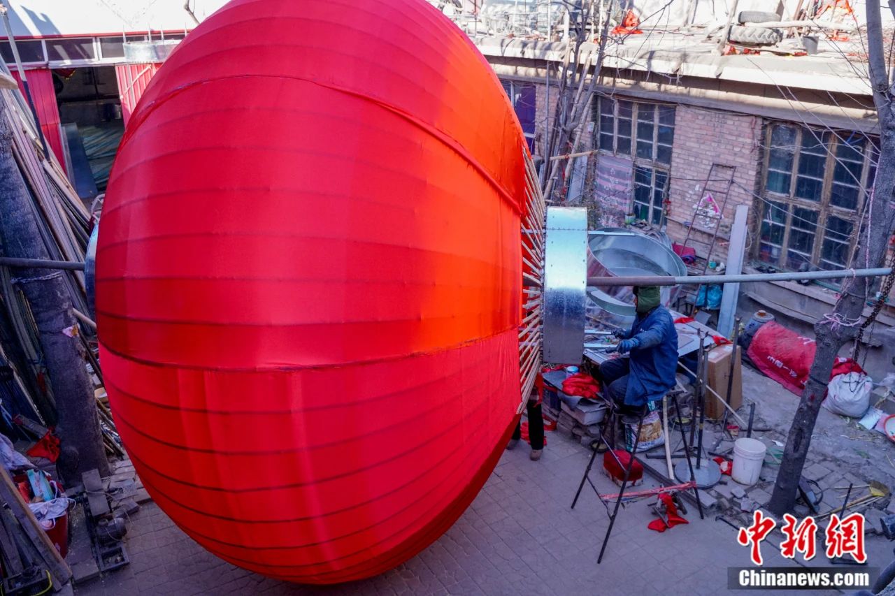 工人们正在赶制巨型宫灯。王朋 摄
