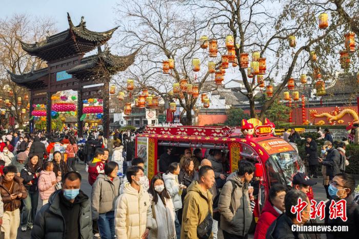 图为1月29日,游客们在南京夫子庙景区内参观。 中新社记者 泱波 摄