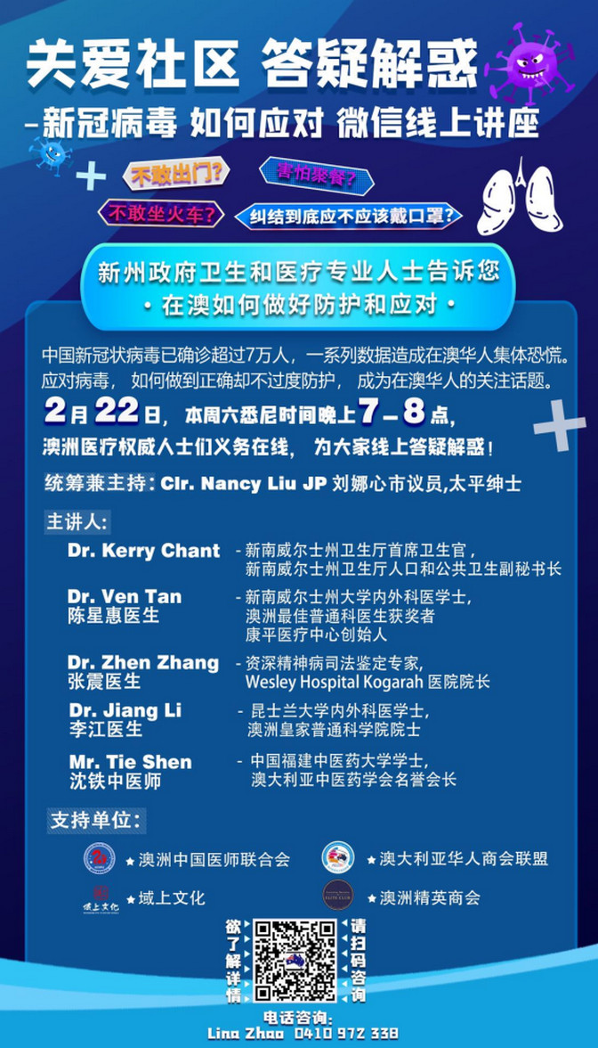 以下“关爱社区 答疑解惑”布告所示,充分反映了居澳华裔专业医师积极为社区作贡献,在世人面前展示了海外华人华侨的风采与品格......