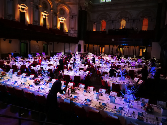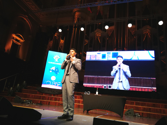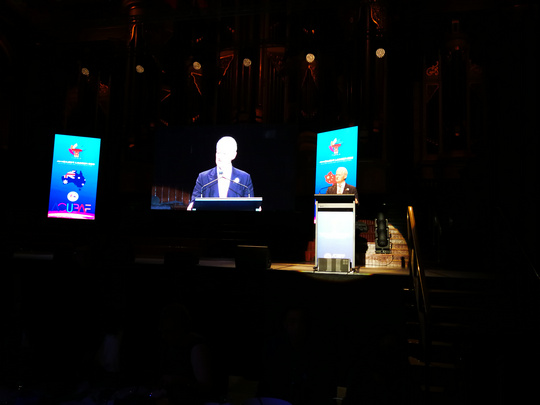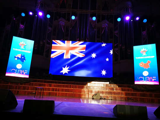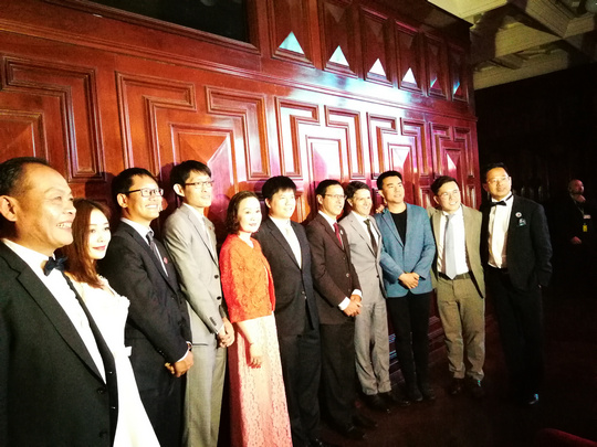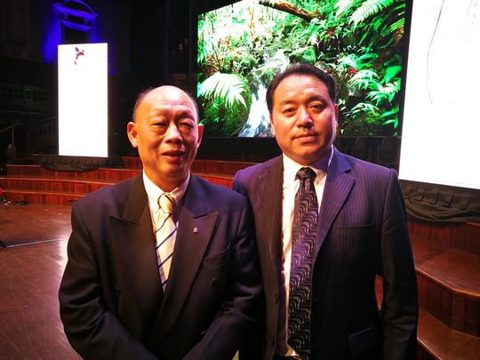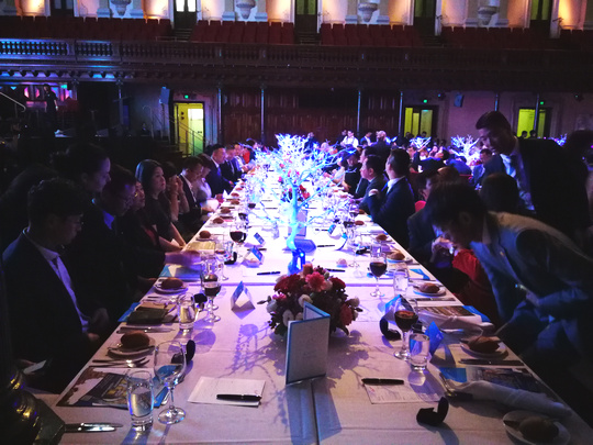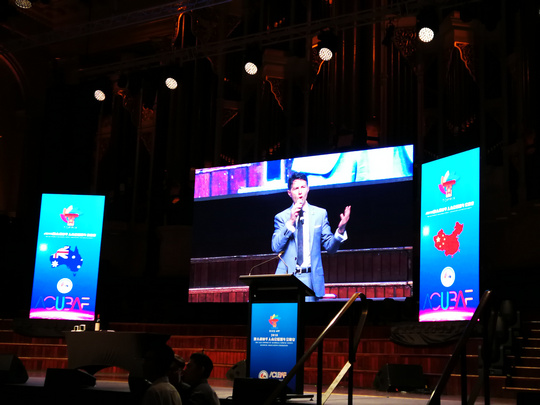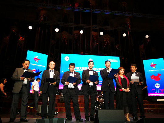 Didgeridoo演奏结束,晚宴也随之正式开始。晚宴现场两位主持人的闪亮登场点燃了现场气氛。一段热情洋溢的开场白后,两位主持人向来宾们隆重介绍参加晚宴的各位嘉宾——随后受邀嘉宾一一上台致辞。