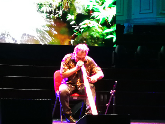 澳洲原住民向来宾演奏Didgeridoo(迪吉里杜管)——它是澳大利亚土著部落的传统乐器,也是世界上最古老的乐器之一。今天,从某种意义上来讲,Didgeridoo已经成为澳大利亚的一个象征。