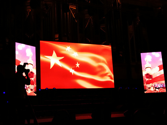 澳华电视传媒(ACTV)记者下午三时便提前来到晚会现场——晚会宣传板早已竖立在市政大厅门前。经采访了解到:晚会负责人、各商会会长、演员、晚会工作人员中的绝大多数,上午很早就来到晚会现场做准备......