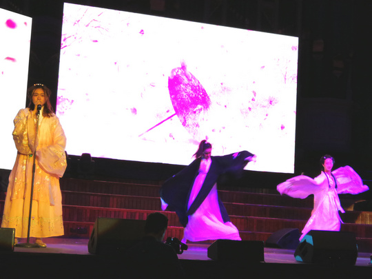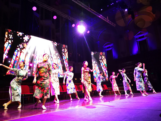 汉服,彰显了数千年灿烂的中华文明史。身着汉服、婀娜多姿的几位姑娘的精彩表演,使整个宴会大厅瞬即刮起了中国风——舞姿曼妙轻柔,音乐动人感人。一场视觉盛宴,使现场观众如醉如痴,大饱眼福……