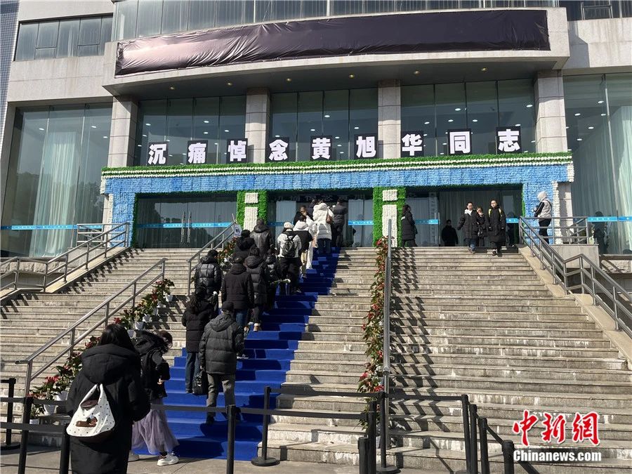 2月9日,在位于武汉的中国船舶集团有限公司第七一九研究所,民众排队吊唁黄旭华。中新社记者 武一力 摄