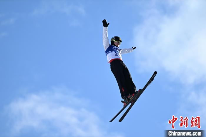 2月9日,在哈尔滨亚冬会自由式滑雪男子个人空中技巧决赛中,李心鹏以123.45分获得冠军,杨龙啸、齐广璞、杨雨衡分列第二至第四。图为齐广璞在比赛中。 中新社记者 刘文华 摄