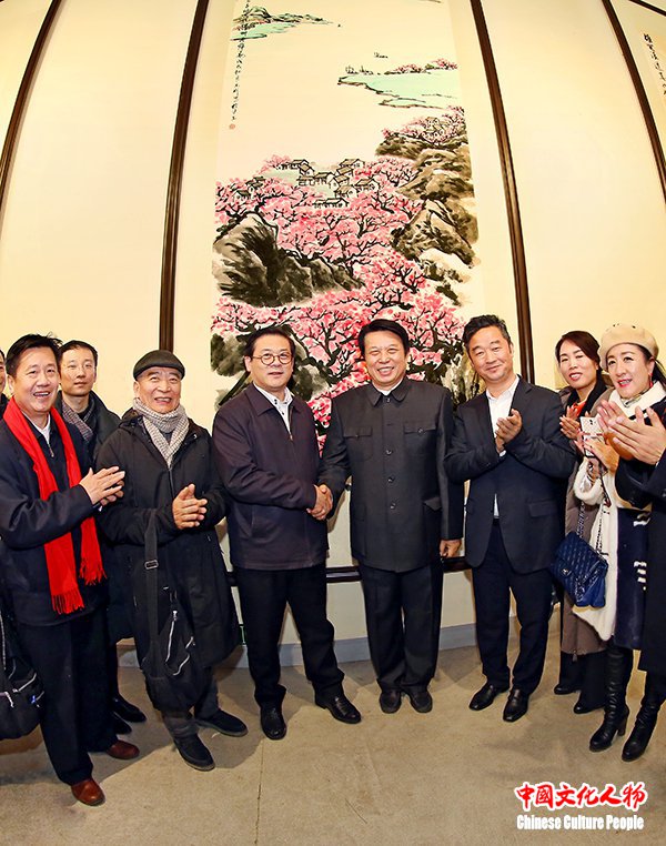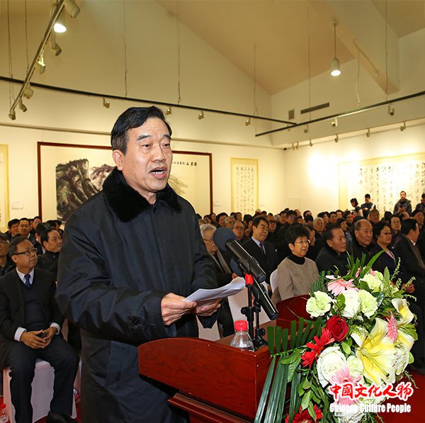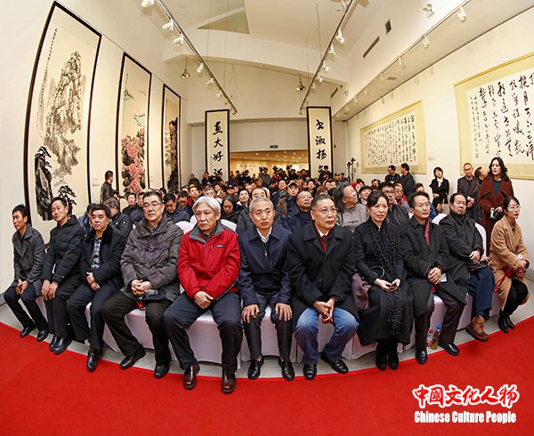 原海军政委、党委书记刘晓江上将,武警部队原政委、党委书记喻林祥上将,国际儒学联合会会长、中共中央政策研究室原主任滕文生,中国文联党组书记、副主席李屹,中国文联原党组书记赵实,原文化部部长蔡武,国家行政学院原党委书记陈福今,全国人大常委会原副秘书长乔晓阳,全国政协文史和学习委员会副主任、中央社会主义学院原党组书记叶小文,中国侨联顾问、中国侨联原主席林军,国家体育总局原局长刘鹏,中国行政管理学会会长、原中编办副主任王澜明,中国书法家协会名誉主席张海,中国书法家协会主席苏士澍,中国美术家协会主席、中央美术学院院长范迪安等领导嘉宾,以及书画艺术界的专家学者和各界知名人士出席开幕式,祝贺展览成功举办