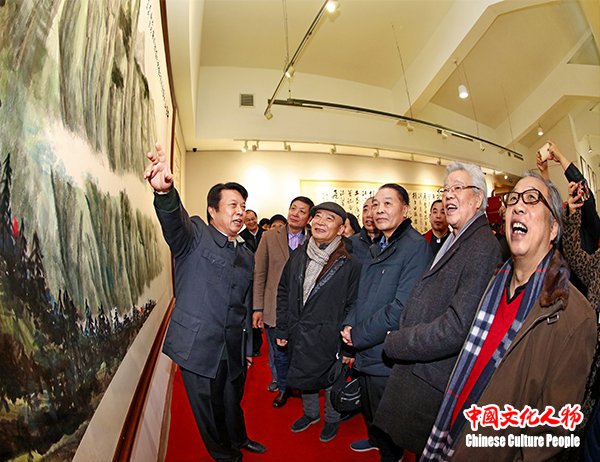 中国美协分党组书记、副主席徐里等参观展览的领导和艺术家为展览的成功举办向覃志刚表示热烈祝贺