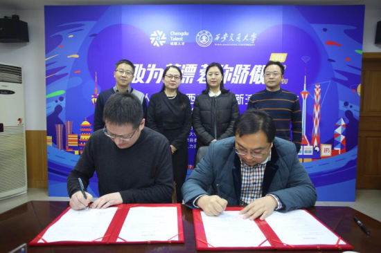 中新网四川新闻12月29日电 (李鲁川)29日上午,蓉漂人才荟系列活动——走进西安交通大学校地合作签约仪式在西安交大举行。新津县委组织部副部长、县人社局局长谢刚,西安交通大学就业创业中心主任郑旭红及新津部分企业代表出席了活动。