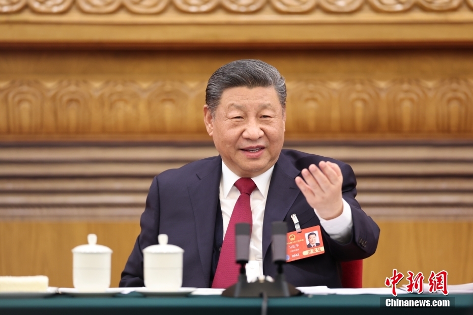 3月5日下午,中共中央总书记、国家主席、中央军委主席习近平参加他所在的十四届全国人大三次会议江苏代表团审议。中新社记者 盛佳鹏 摄