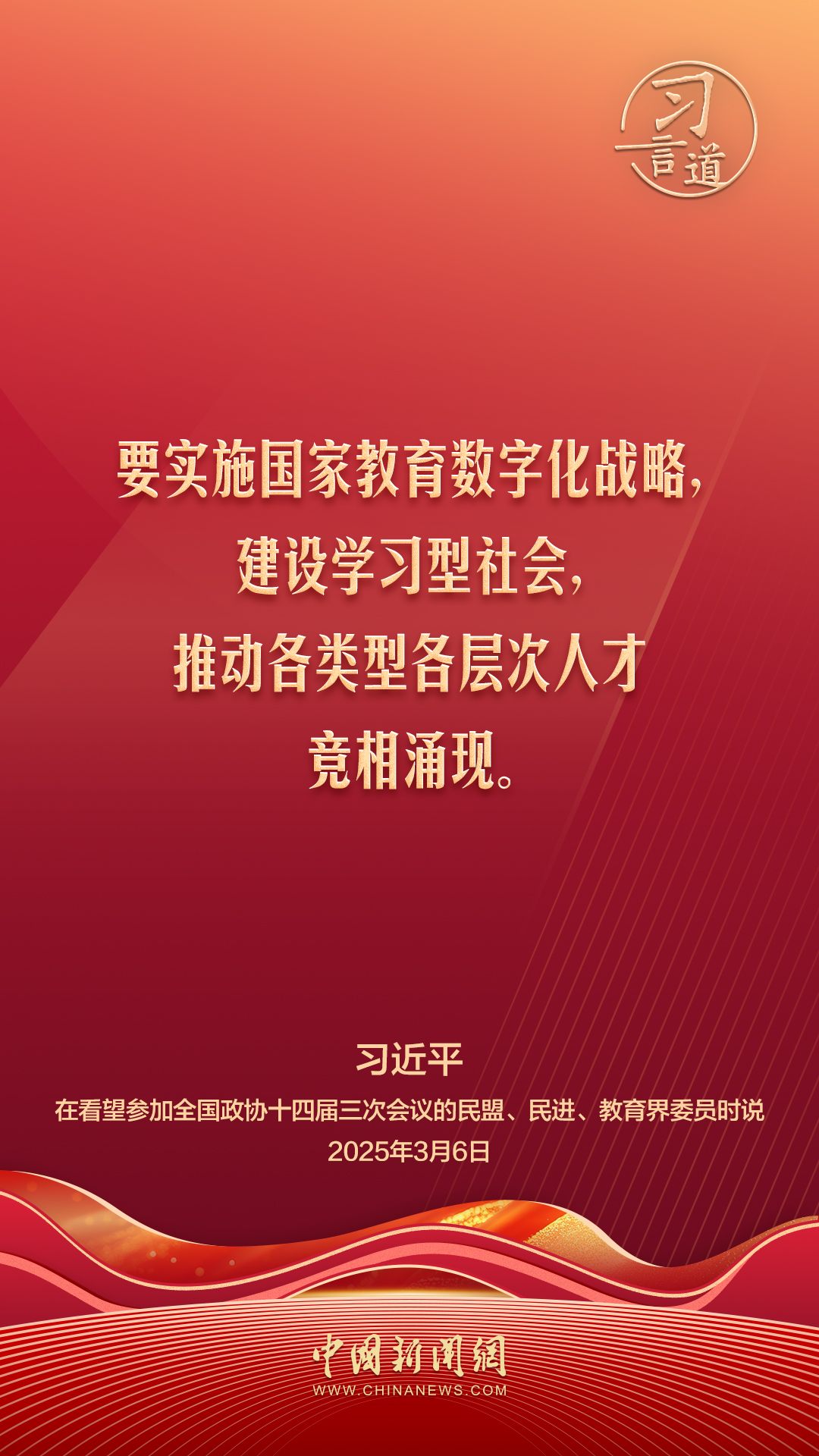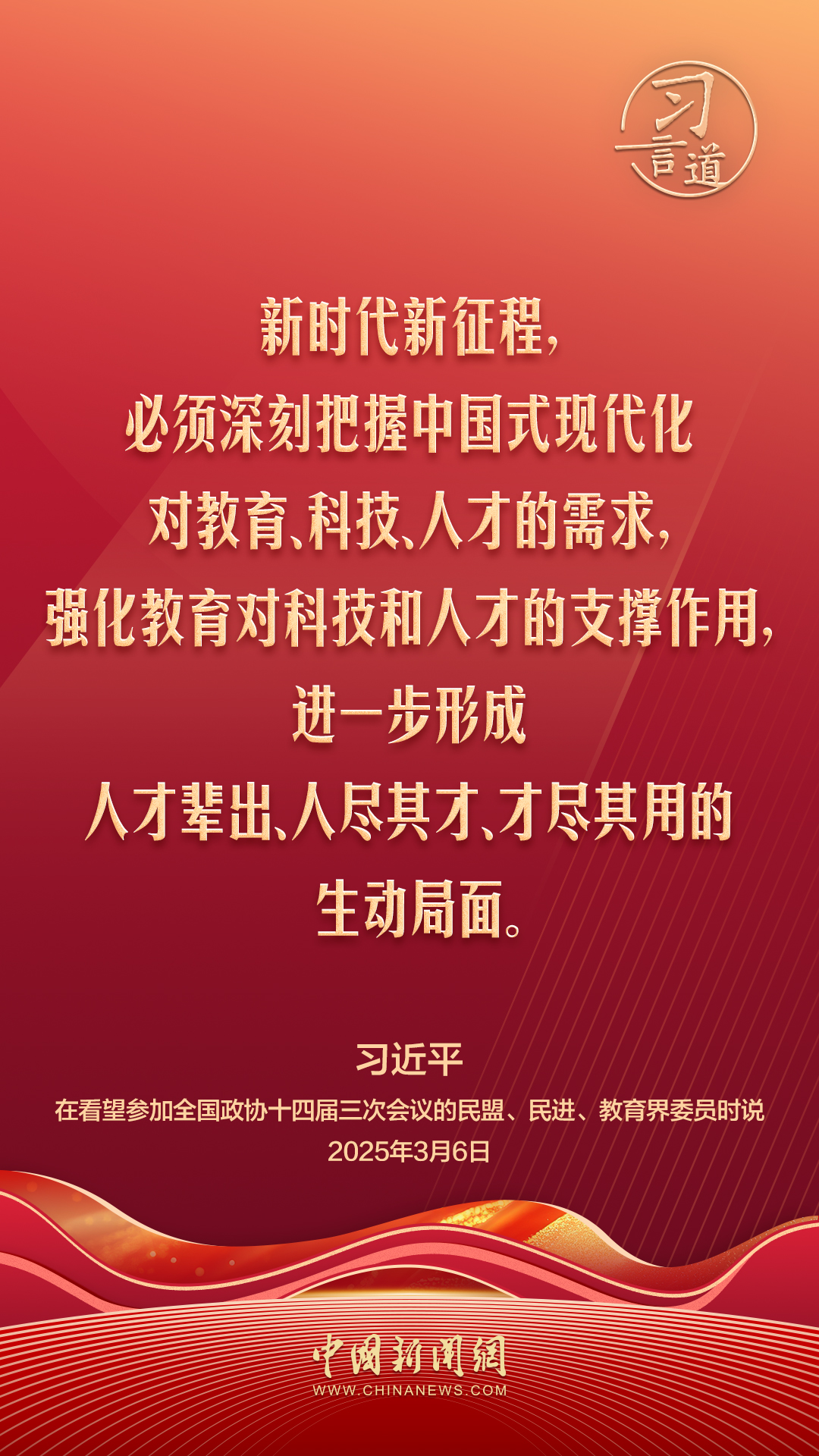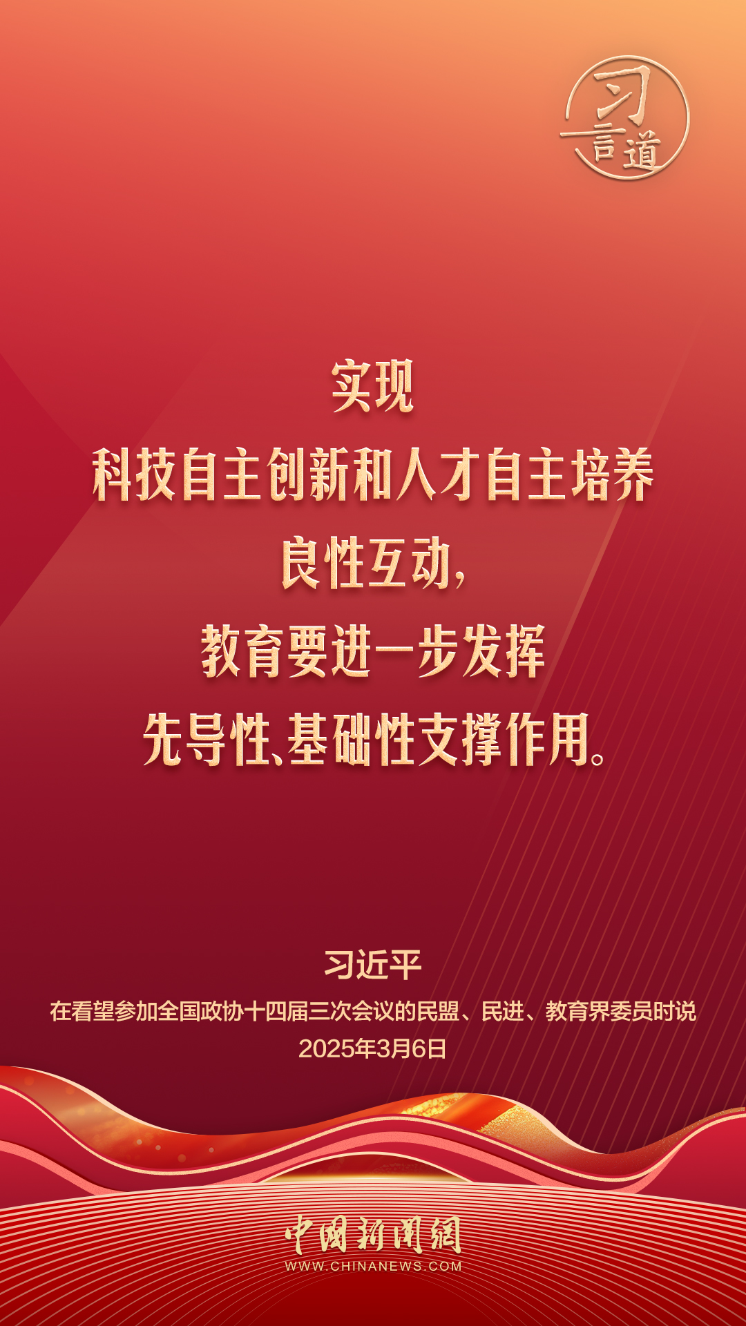 中共中央总书记、国家主席、中央军委主席习近平6日看望了参加全国政协十四届三次会议的民盟、民进、教育界委员,并参加联组会,听取意见和建议。他强调——