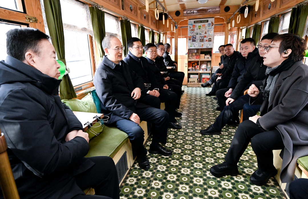 3月15日,吉林省委书记黄强乘坐有轨电车体验城市文旅。图片来源:吉林日报