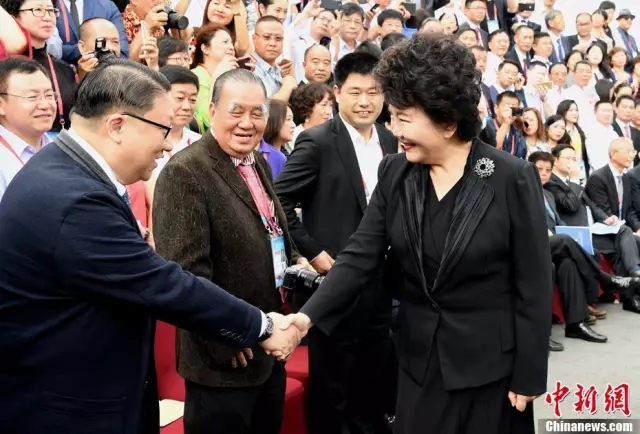 国务院侨务办公室主任裘援平与海外华文媒体嘉宾亲切握手