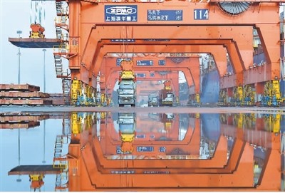 2月21日,在唐山港京唐港区集装箱码头,工人操作机械设备吊装集装箱。 新华社记者 杨世尧摄