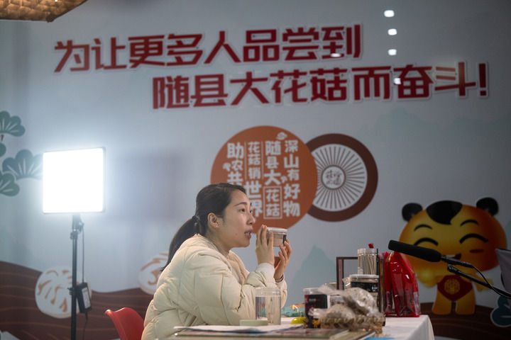随县大花菇电商直播现场。新华社记者 肖艺九摄