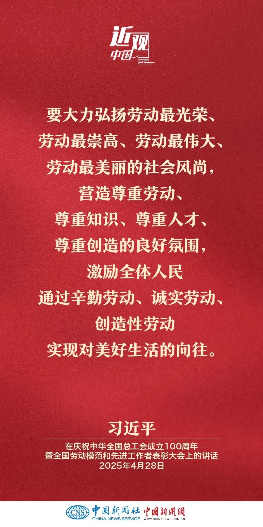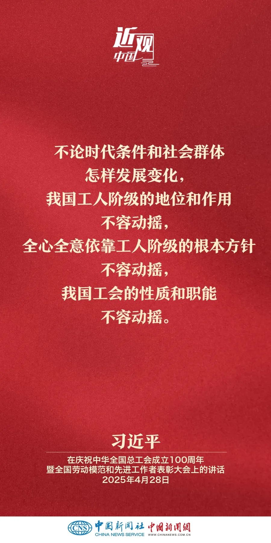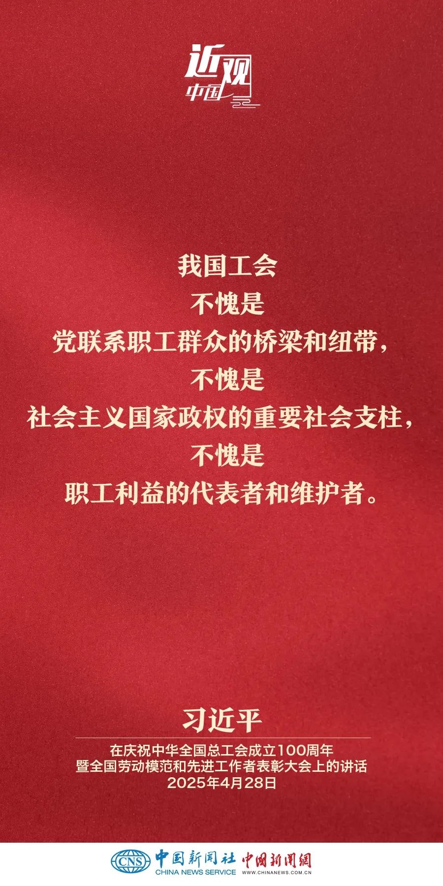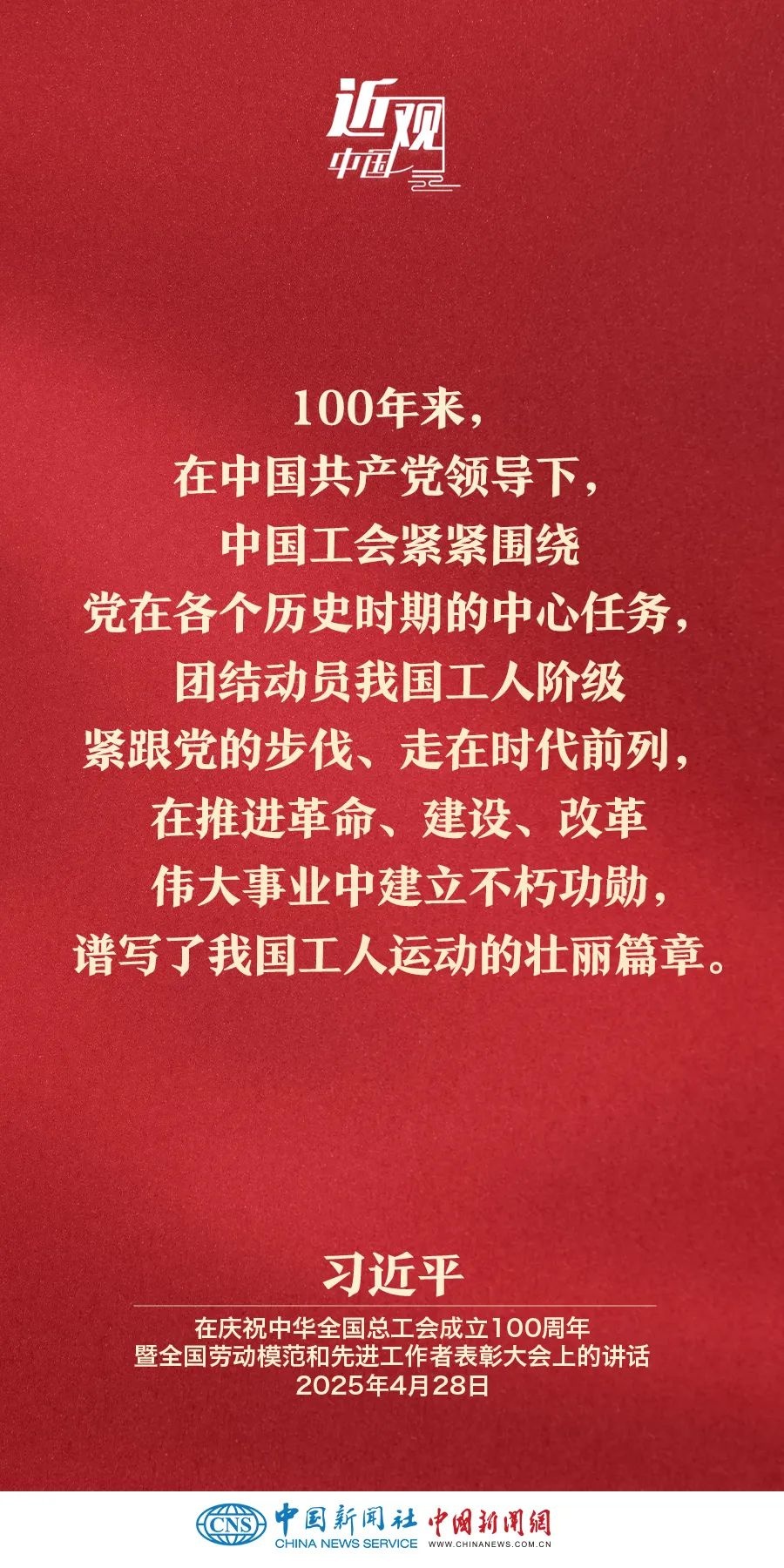 庆祝中华全国总工会成立100周年暨全国劳动模范和先进工作者表彰大会28日上午在人民大会堂隆重举行。中共中央总书记、国家主席、中央军委主席习近平出席大会并发表重要讲话强调——