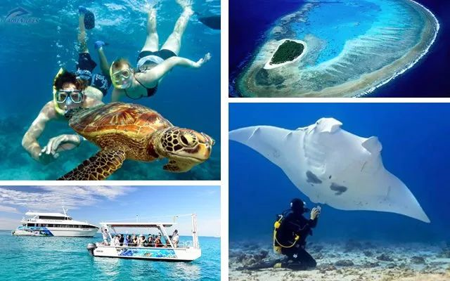 大堡礁(Great Barrier Reef)链上的原始岛屿,海面下清澈的斑斓世界。本想潜入水中触摸珊瑚,不料惊动了隐藏于珊瑚中的海龟和魔鬼鱼。