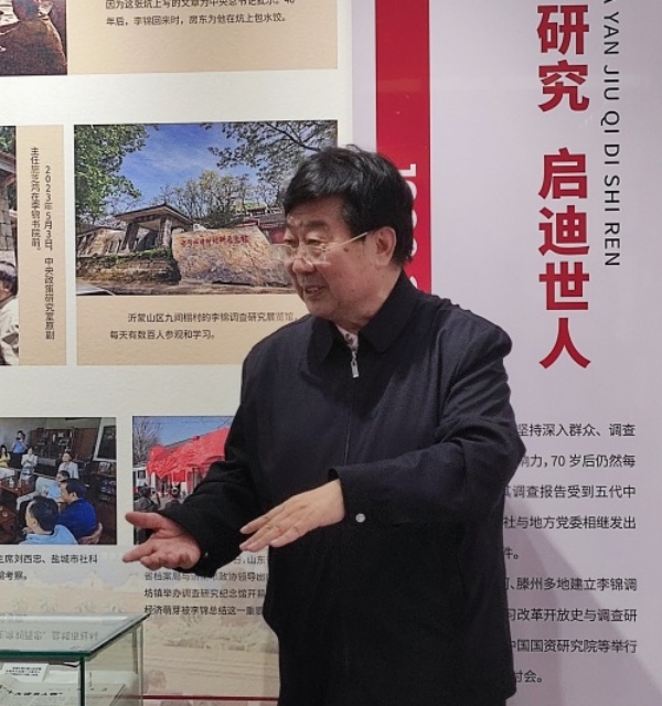 对于李锦老师,我一是仰望,李锦老师的调查研究事迹对于我来说,高山仰止,可望而不可及,是我开展学术研究和创作的一面旗帜和榜样。二是求教,我非常希望能把李锦老师调查研究的精神传承给全省社科智库界。两年前,我邀请李锦老师给江苏智库报作讲座。三是推动,推动李锦老师的调查研究展览能够在江苏尽快落地,使李锦老师的调查研究精神能够在有后羿射日传说的射阳县,在江苏大地上扎根、发芽、开花、结果。四是追随,努力做一些深入的调查研究,努力围绕调查研究开展一些研究,努力把握李锦老师调查研究的规律和真谛。