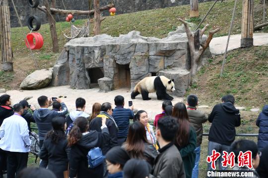 中新网成都2月23日电 (贺劭清 岳依桐)“这简直就是‘功夫熊猫’!”23日,泰国《中华日报》编辑郑升辉在四川都江堰市看着在几米高的树上安然酣睡的大熊猫,一边用手机拍照,一边惊叹道。