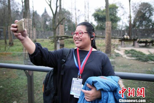 海外华文媒体代表都江堰“邂逅”大熊猫:这简直就是“功夫熊猫"