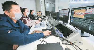 二月七日,在河南项城融媒体中心网络直播导播间内,工作人员在紧张忙碌着。 新华社发
