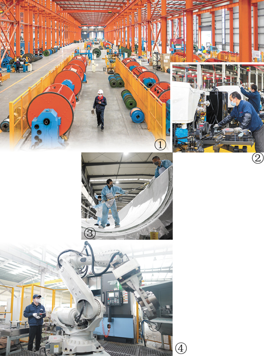 图③:重庆重通成飞新材料有限公司加紧生产风机叶片。