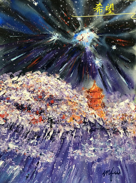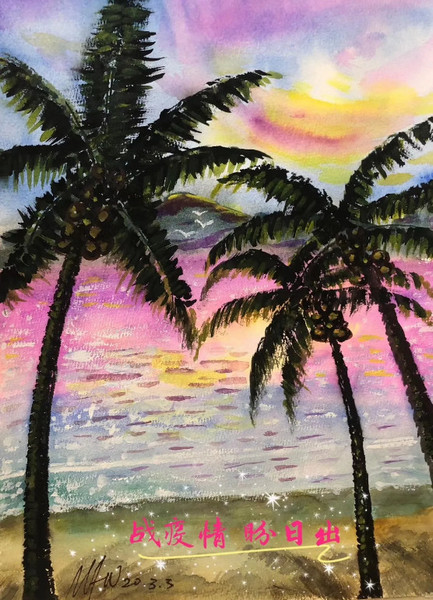 疫情牵动着每个人的心,不论在荆楚大地,还是在北国春城,抗击病毒的战斗始终高昂。近日,爱国华侨马芳武教授拿起手中的画笔,把自己眼中的“战疫情,盼春天”的景色描绘出来,表达对抗疫一线白衣战士的真挚问候和崇高敬意,让抗疫区的人们能够看到这个万紫千红的春天,欣赏到充满希望的日出。