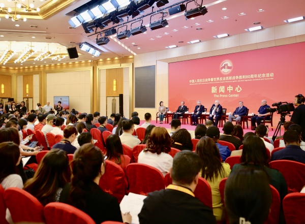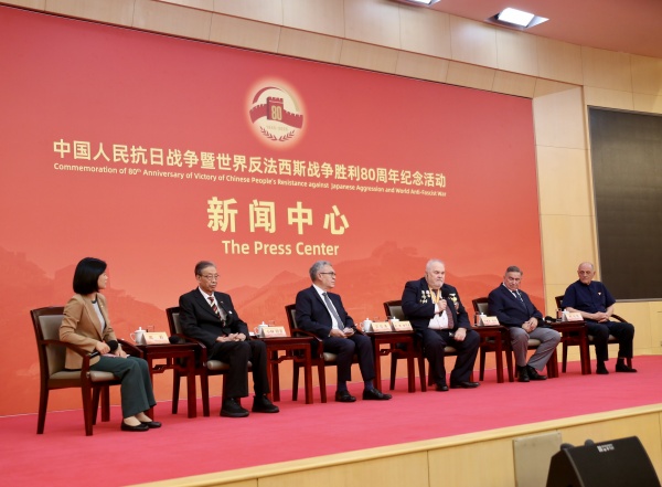 (中外新闻社 中外新闻网记者 韦燕 吴荣林 刘暖尧)中国人民抗日战争暨世界反法西斯战争胜利80周年纪念活动新闻中心9月2日上午在梅地亚新闻中心二层新闻发布厅举行第三场记者见面会,请日本籍八路军老战士小林清之子小林阳吉,法国医生贝熙叶之子贝石涛,苏联元帅瓦·伊·崔可夫之孙尼·弗·崔可夫,美中航空遗产基金会主席杰弗里·格林,英国友人大卫·柯鲁克、伊莎白·柯鲁克之子柯马凯等为中国抗战胜利作出贡献的国际友人或其遗属代表介绍对中国人民抗日战争的认识等方面情况,并回答中外记者提问。