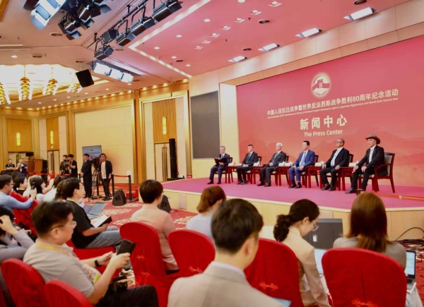 (中外新闻社 中外新闻网记者 韦燕 吴荣林 刘暖尧)中国人民抗日战争暨世界反法西斯战争胜利80周年纪念活动新闻中心9月1日下午在梅地亚新闻中心二层新闻发布厅举行中国人民抗日战争暨世界反法西斯战争胜利80周年纪念活动新闻中心举办第二场记者见面会,请缅甸中华总商会会长林文猛、马来西亚吉隆坡广东义山主席杨博耀、斐济华人文化艺术经济联合会荣誉会长方志伟、西班牙中国和平统一促进会会长徐松华、澳大利亚悉尼华星艺术团团长余俊武等华侨华人代表介绍华侨华人在世界各地举行的纪念活动及其对抗战的贡献等方面情况,并回答中外记者提问。