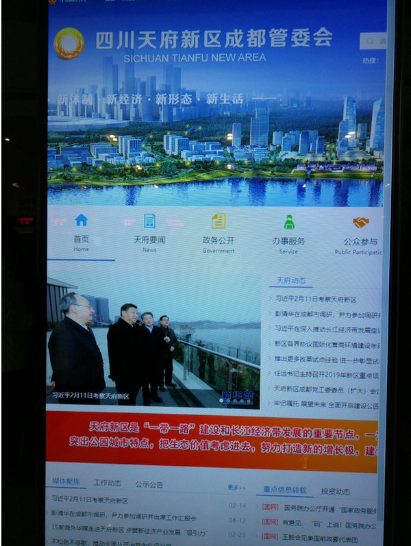 “行走中国·‘一带一路’国家海外华文媒体天府行活动”正式启动的第三、四日,即2月20、21日星期三、四两天,我们来自世界各大洲15家海外华文媒体的代表们在中新社四川分社社长邹辉、副社长樊国防及其社里朋友们的热情接待与带领下,分别对天府新区规划厅、天府新区地埋式污水处理厂、地下综合管廊、中铁卓越中心、诺基亚(新经济产业园A区)、中新猕猴桃实验室(新经济产业园B区)、天府英才中心、人才公寓、商汤科技、赫尔墨斯(新经济产业园D区)、天府新区政务中心、将军碑社区卫生服务中心、龙泉山城市森林公园等处进行实地参访。